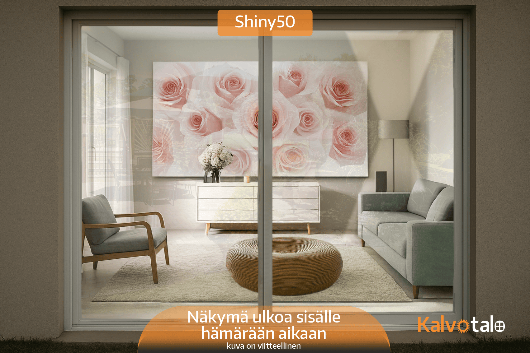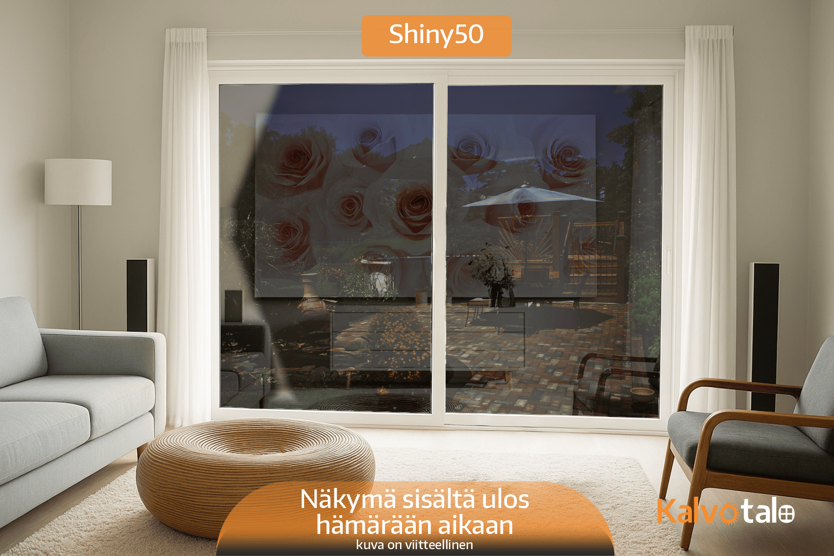 Solskyddsfilm Shiny50 on myydyin filmmme omakotitaloihin ja se on vaalein vaihtoehto Shiny-filmsarjasta. Film lisää ikkunan peilaavuutta vain hieman ja on sisältä katsottuna hyvin huomaamaton, mutta se torjuu silti auringon lämpösäteilystä yli 50 %. Film on suunniteltu asennettavaksi kiinteisiin elementtilaseihin ja se asennetaan aina ikkunan ulkopintaan. Avattaviin ikkunoihin vastaava solskyddsfilm on Shiny50 interior, joka asennetaan ikkunan sisäpintaan. Film torjuu auringon lämpösäteilyn lisäksi myös jonkin verran heijastuksia, eli esimerkiksi television katso olohuoneessa on helpompaa, kun film kääntää osan auringon heijastuksesta pois ja television kuva säilyy kirkkaana.