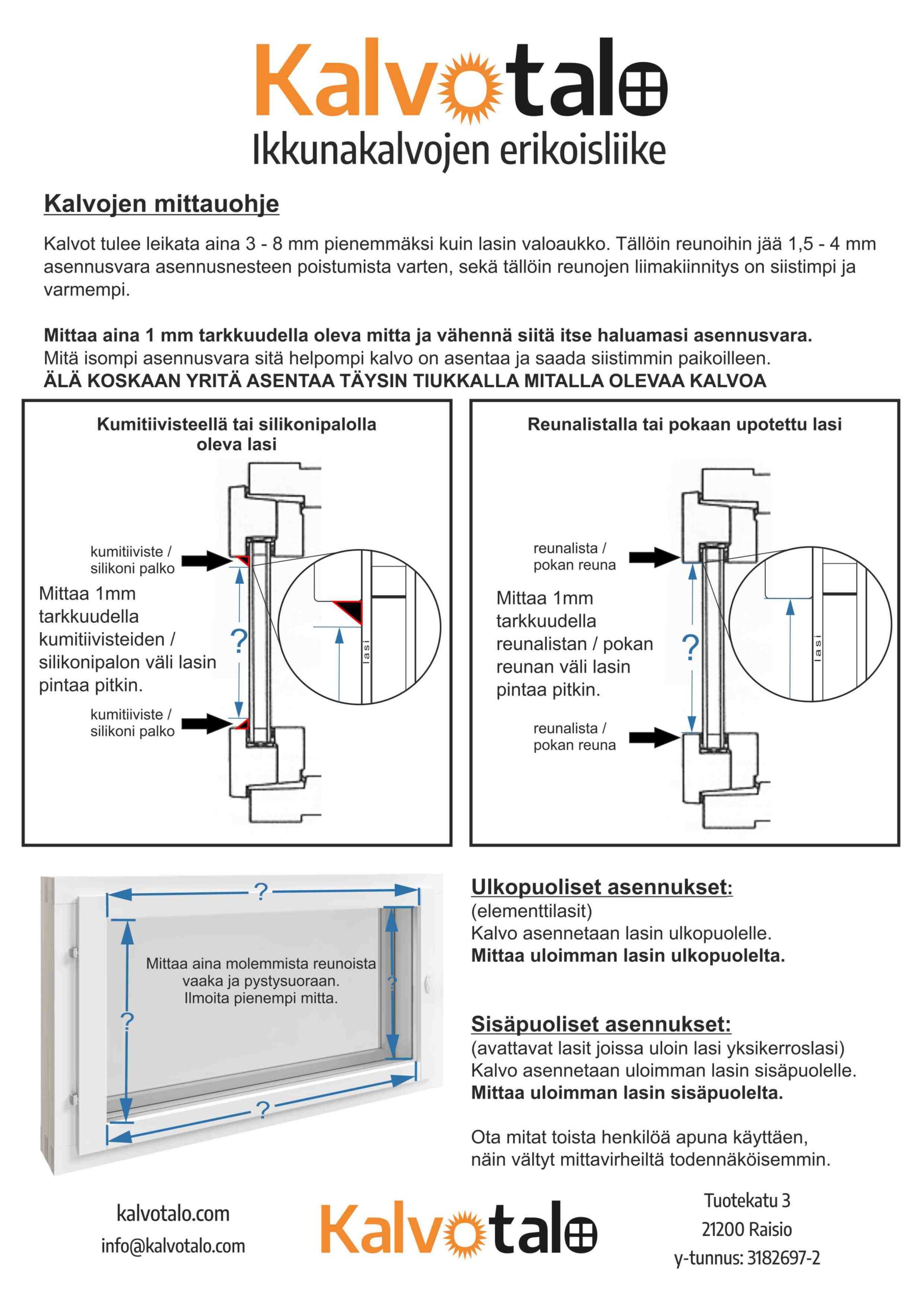 Tästä löydät yksityiskohtaiset ohjeet mittojen ottamiseen valmiiksi leikattujen filmjen tilaukseen.