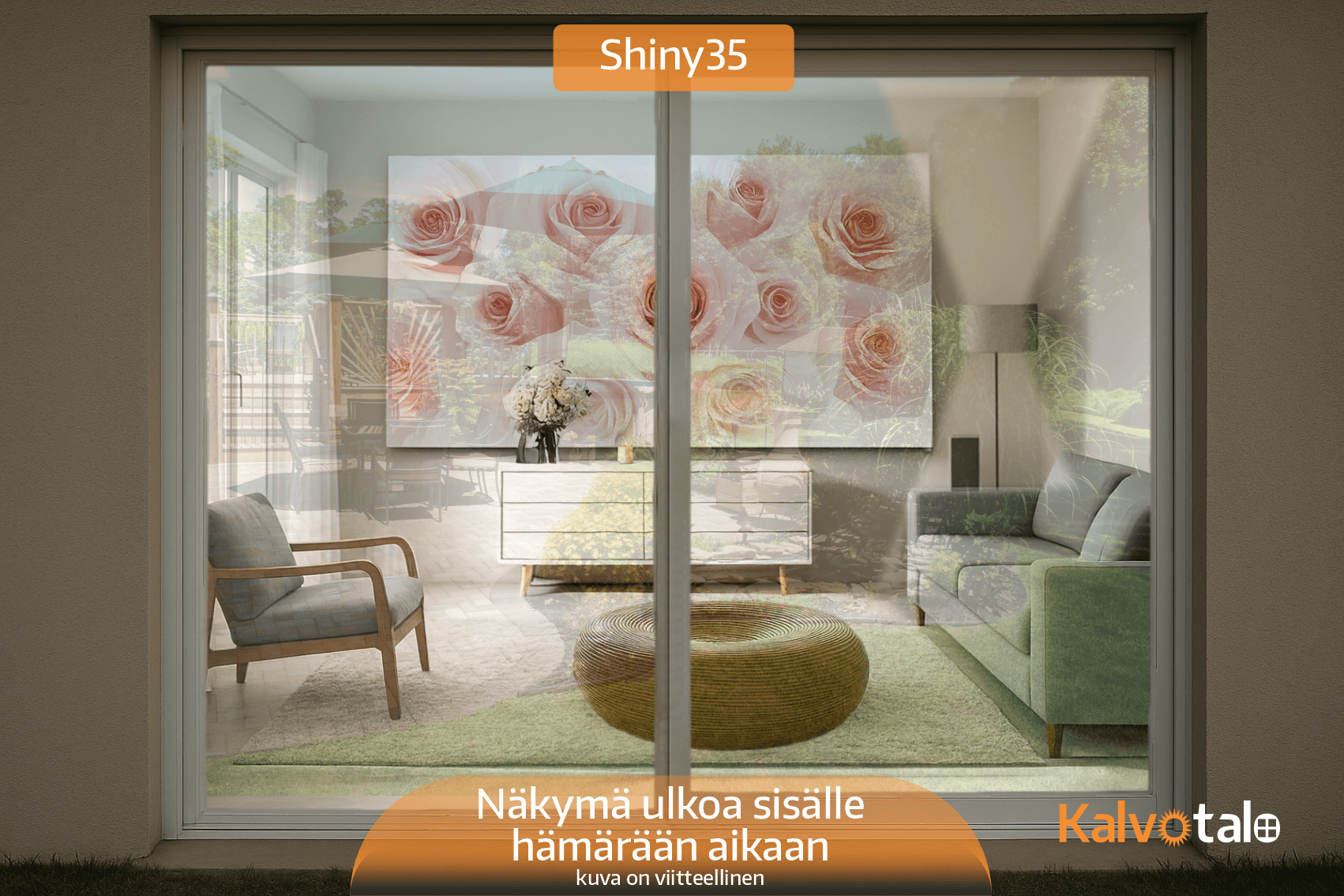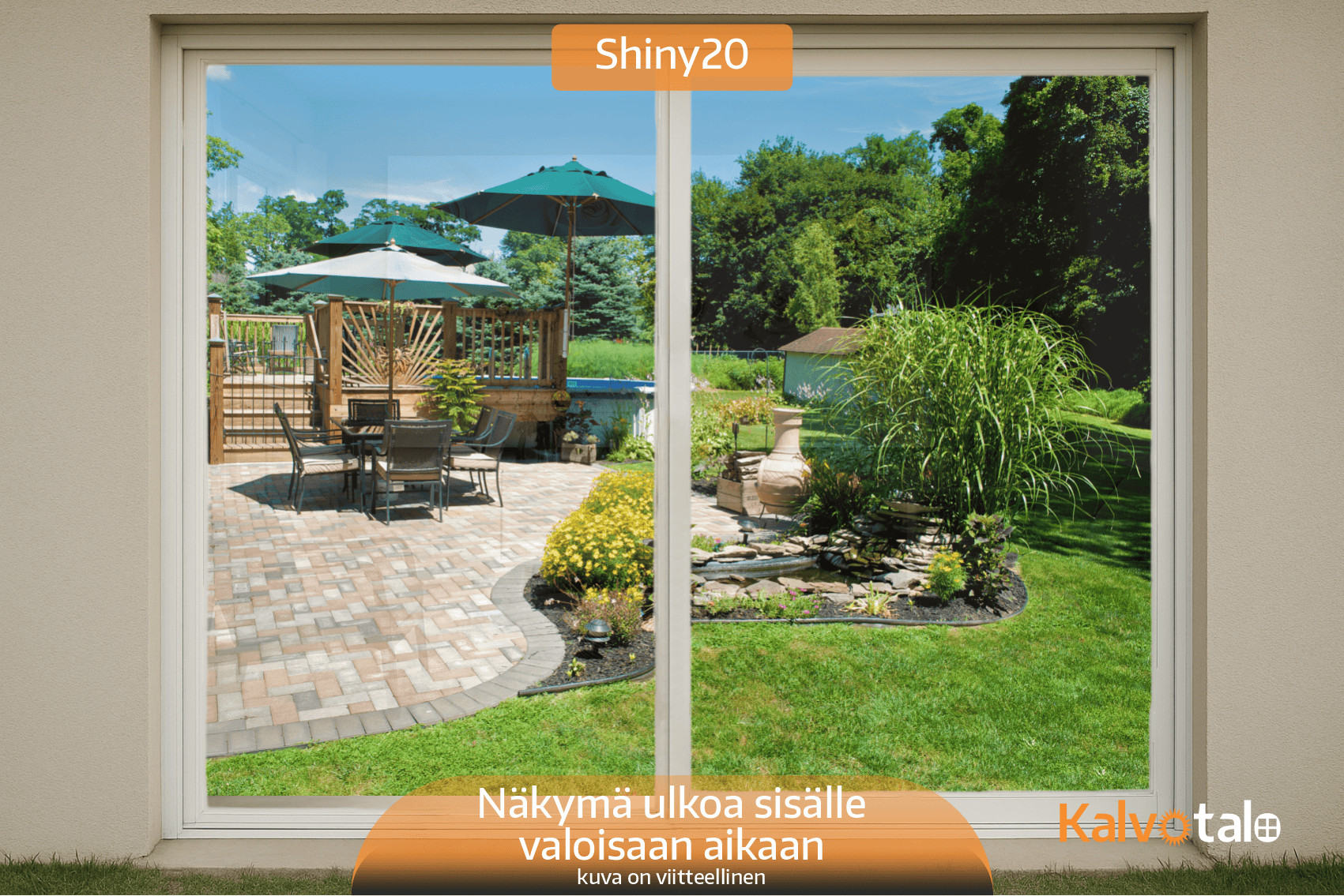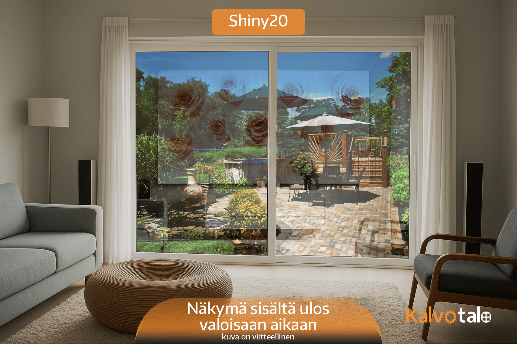 Spegelfilm som är det mörkaste och mest reflekterande alternativet i Shiny-serien. Filmen är konstruerad för montering på fasta elementglas och monteras alltid på fönstrets utsida. För öppningsbara fönster finns motsvarande spegelfilm Shiny20 interior, som monteras på fönstrets insida. Filmen är vår bästsäljande film för värmereduktion på kontor, eftersom den till ett förmånligt pris ger ett mycket effektivt passivt solskydd mot värme. Filmen reducerar även reflexer effektivt, vilket gör det lättare att arbeta vid skärmar när spegelfilmen avleder en del av solens reflexer och skärmbilden förblir klar.