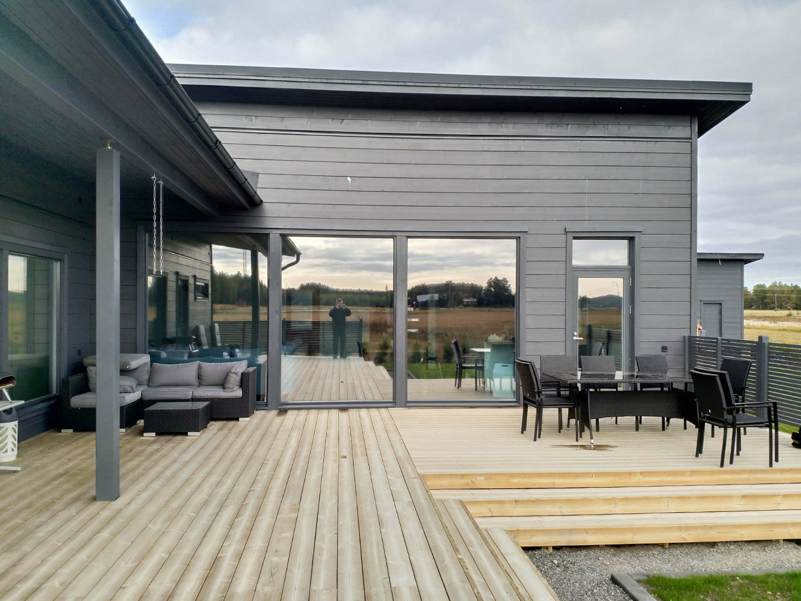 Uudella asuinalueella Liedon Ilmarisissa sijaitsevassa omakotitalossa oli lasitetulla terassilla ongelma, kun aurinko lämmitti kesähuone käytössä olevan tilan liian kuumaksi.